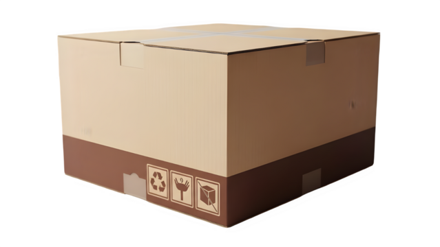 Brown cardboard box isolated on transparent background