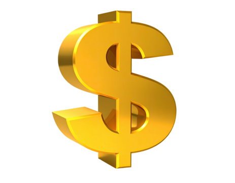 A gleaming, three-dimensional dollar sign, rendered in polished gold, set against black
