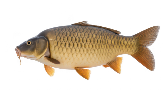 Common carp PNG isolated on transparent background, freshwater fish with golden scales for aquaculture and fishing themes