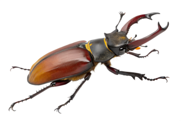 Majestic Stag Beetle with Impressive Mandibles Isolated on White, Revealing its Detailed Anatomy and Unique Coloring