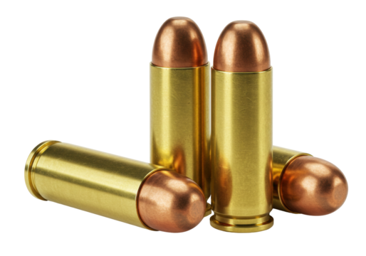 Isolated Ammunition rounds, copper-jacketed bullets are a common type of projectile used in firearms