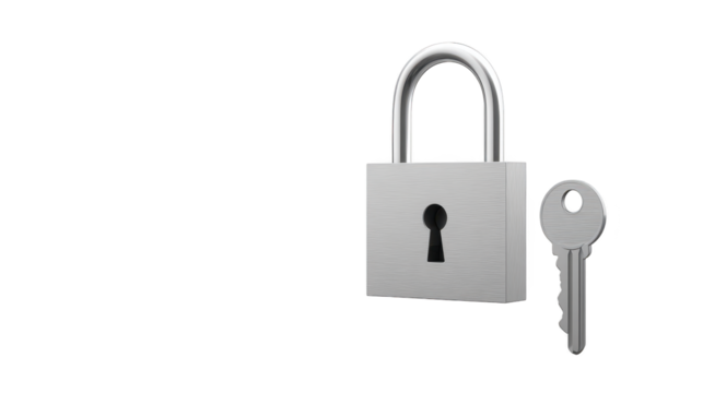Key unlocking metal lock mechanism metal lock with key inserted ensuring access - metal lock with key inserted ensuring access