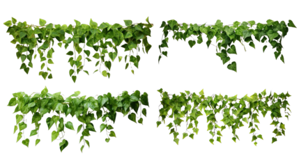 green fern isolated on white background, green ivy leaves on png, a vine growing on a wall with leaves, a plant with green leaves hanging from wall
