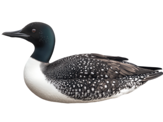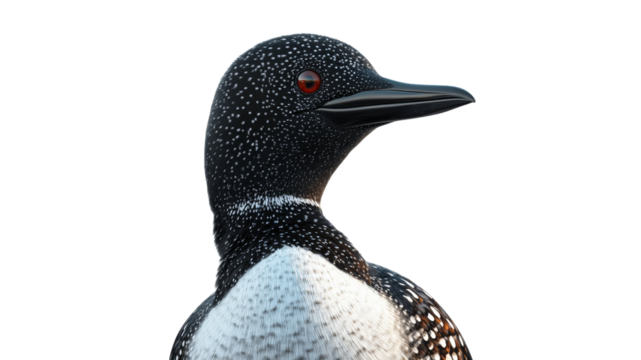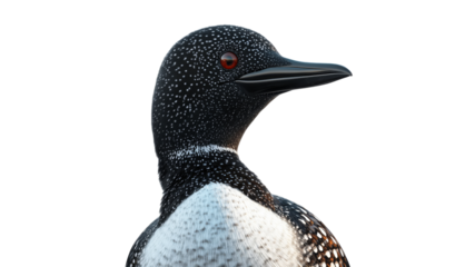 common loon bird with black and white plumage, aquatic North American waterfowl, isolated on white background
