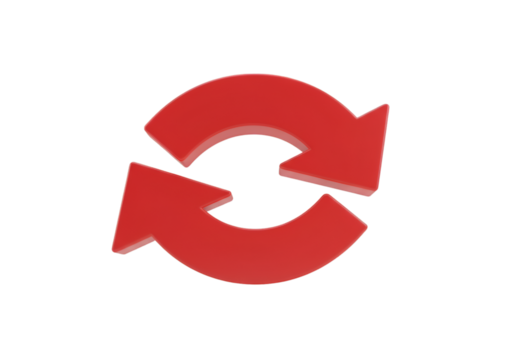 3D Rendered Red Arrows Rotating on a Black Isolated Transparent Background