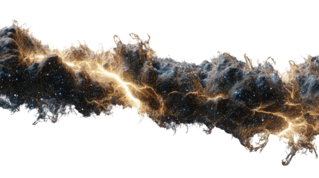 Cosmic nebula discharging electric lightning bolt in deep outer space with stars, abstract energy thunder storm effect, transparent background