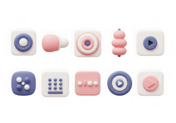 Set of stylish 3d pastel icons for digital interfaces, isolated on transparent background