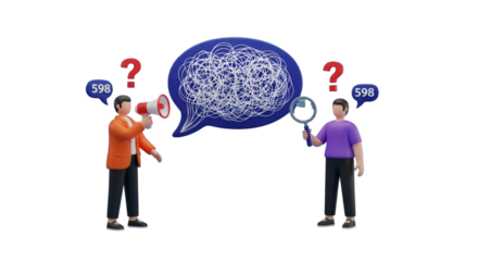 Communication Breakdown: Megaphone, Magnifying Glass, and Confusion