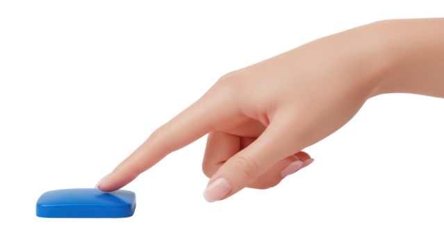 Hand is touching a blue object that has a lot of lines and dots on it. isolated illustration on  transparent background PNG