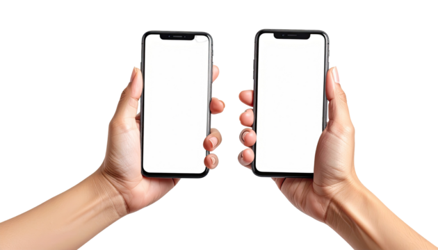 Two hands holding smartphones, blank screens (1)