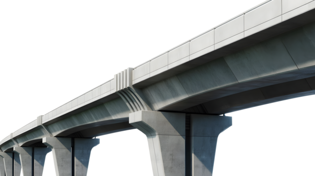Modern elevated concrete viaduct for urban transportation infrastructure isolated on white