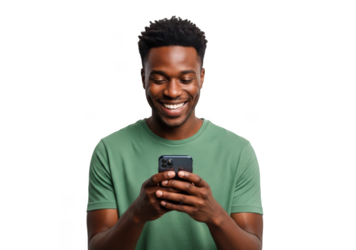 Hand holding modern smartphone with blank screen isolated transparent background technology concept mockup for app design digital device communication minimal style realistic vertical orientation