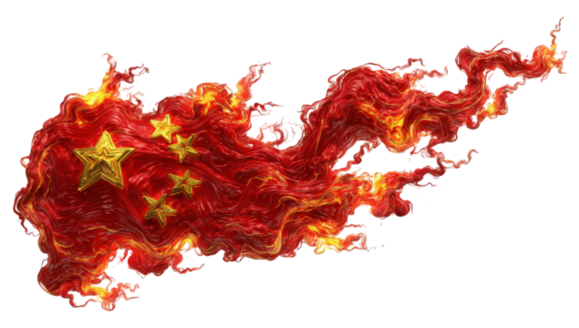 Chinese flag in fiery flames