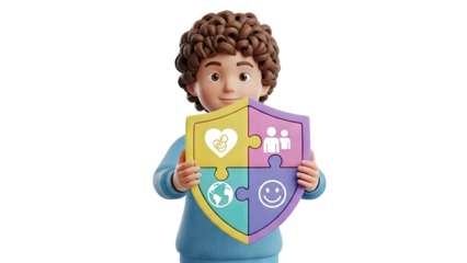 Child Holding Shield with Icons
