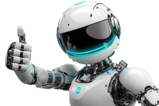 Friendly robots giving thumbs up in a lively cafe atmosphere, showcasing positivity and innovation in a modern social setting