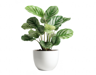 lush green calathea plant in a white pot, png