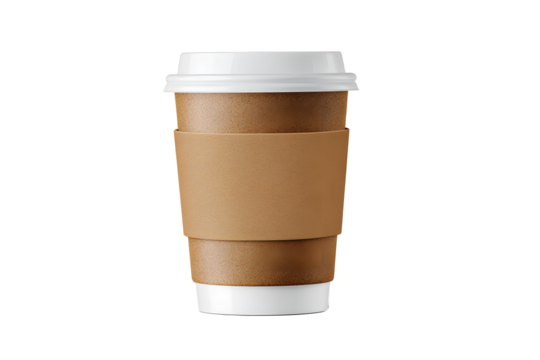 Warm drink served in a cardboard cup for takeout at a busy cafe during morning hours in a city