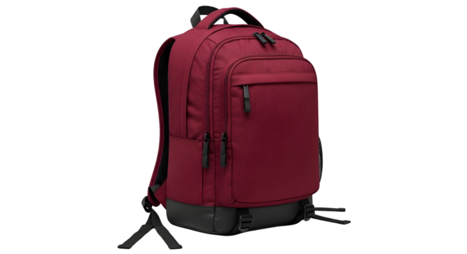Maroon colored backpack for travel and commuting isolated PNG with Transparent Background
