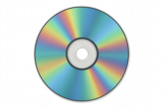 Colorful rainbow shimmering compact disc data storage, Isolated On White Background, Png Transparent