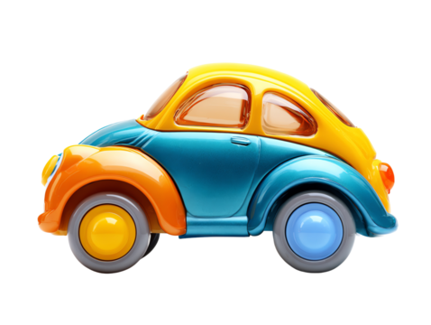 Colorful Retro Style Laptop Computer with Blue Screen and Yellow Body on Transparent Background