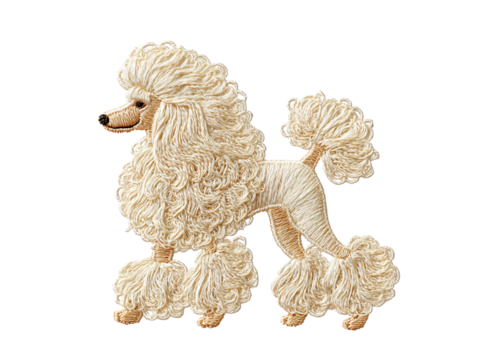 Elegant poodle embroidered with beige thread on black background