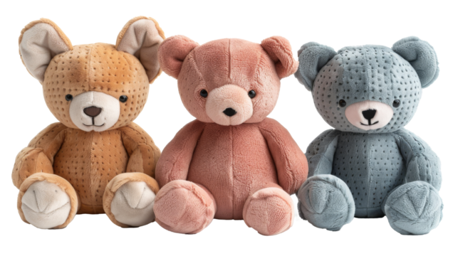 cute set of 3 toy bear teddy cut out on .PNG transparent background