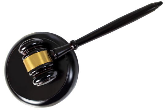 Judge's Hammer in Judgment and Law, Court Hammer on White Background.