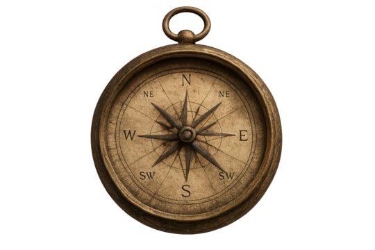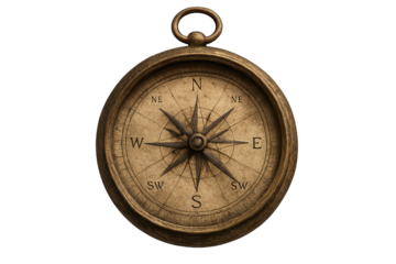 vintage brass compass with a detailed compass rose and directional markings. symbolizing navigation and exploration its aged appearance suggests historical significance. making it a representation of