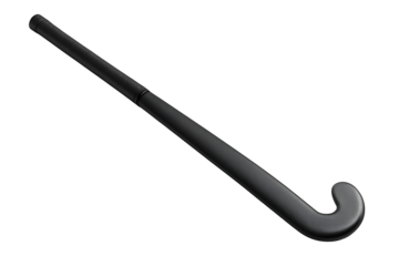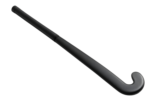 Black field hockey stick with textured grip tape on handle used for professional team sports competition and training isolated on transparent background