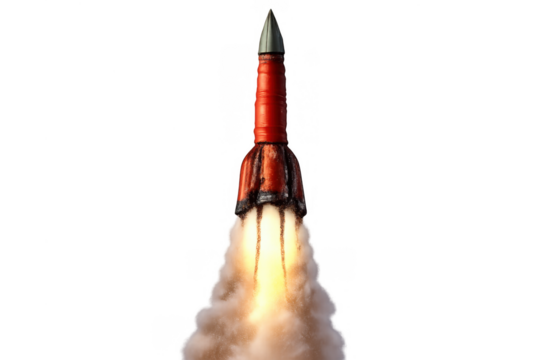 Front view of a sleek red formula 1 racing car isolated on transparent background
