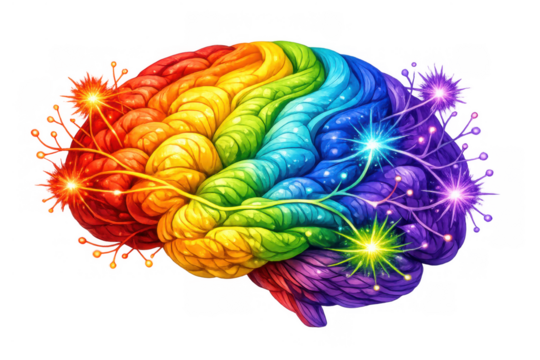 Realistic human brain isolated on transparent background, showing complex structure and blood vessels
