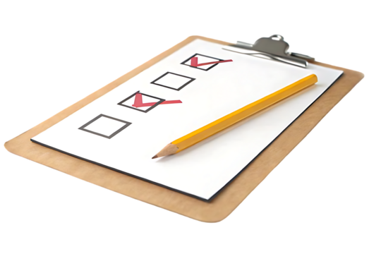 Audit Checklist on clipboard with pencil, isolated on transparent background.