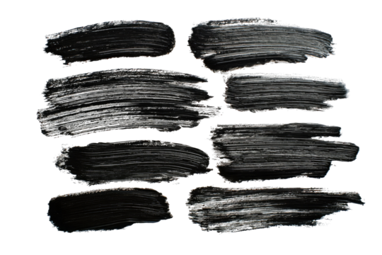 Floating abstract brushstroke forms on transparent background
