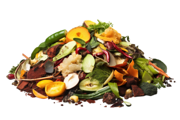 Vibrant Pile of Fresh Organic Vegetable Scraps Celebrating Nature’s Cycle at a Local Market on Transparent PNG Background.