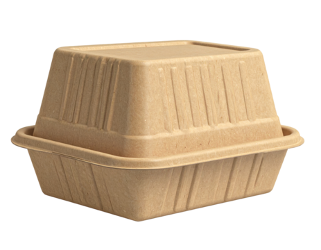 Biodegradable food container eco friendly sustainable packaging compostable box brown fiber takeout container clamshell disposable lunch box natural material clean minimal isolated on white