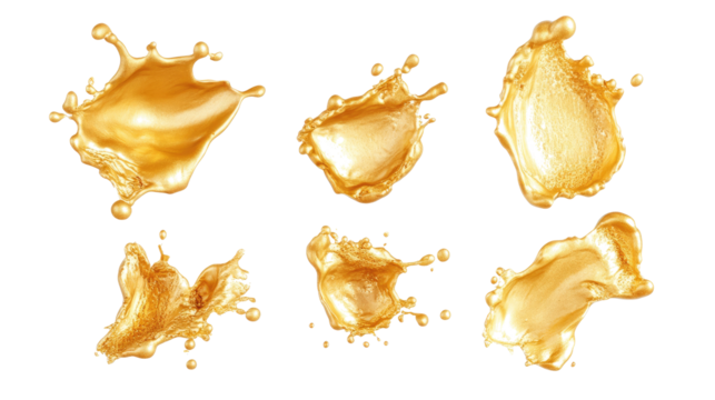 Golden Oil Splashes Isolated on a Transparent Background Generative AI