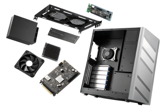 Computer components scattered abstractly isolated on a transparent background computer parts