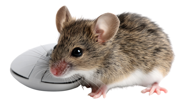 Mouse's Digital Companion: A curious mouse beside computer accessory, its presence adding a unique perspective.