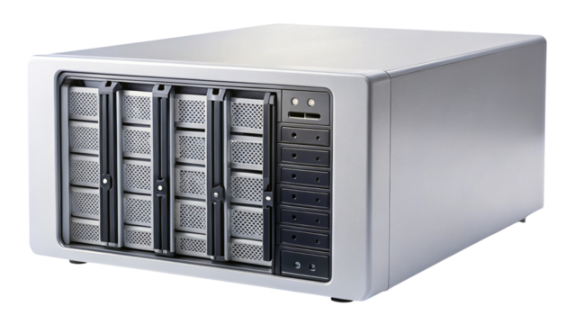 Sleek modular server system featuring multiple drawers showcased on transparent background