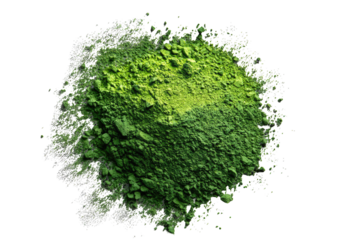 Green powder cluster, a pile of vibrant, earthy green powder, radiating outward on a black background