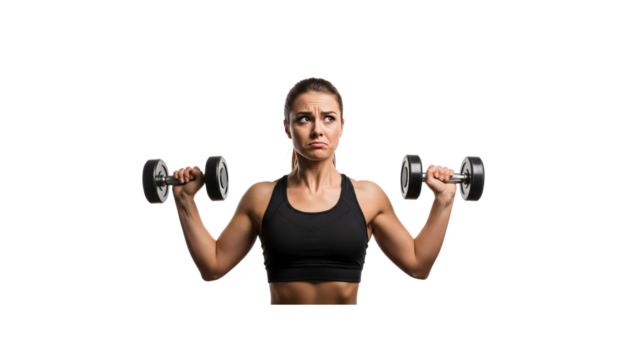 Muscular man concentrating on bicep curls, showcasing strength and determination for fitness goals and healthy lifestyle, isolated on white background