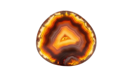 Agate slice isolated on transparent background, showcasing its intricate concentric bands of color, a beautiful and unique natural gemstone pattern