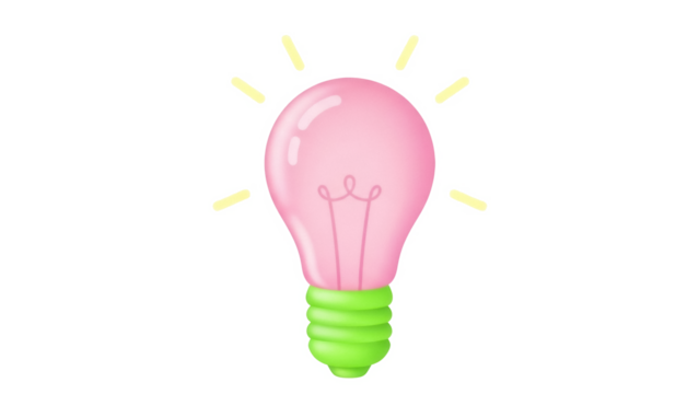 Pink light bulb PNG isolated on transparent background, creative idea concept for innovation and inspiration, cartoon style