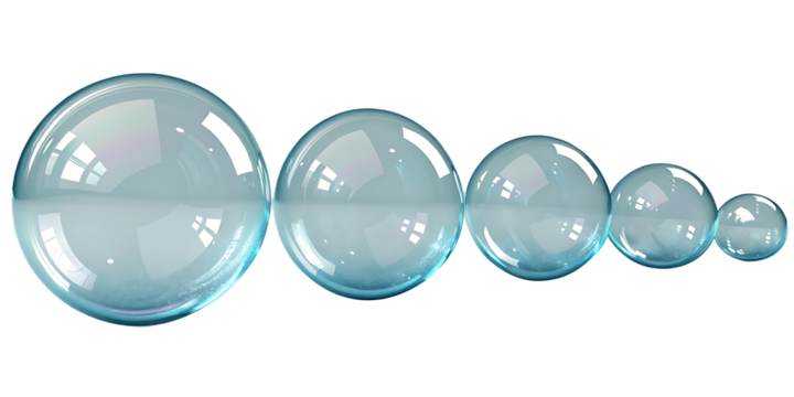 Gradient of Transparent Spheres Reflecting Light on Black Background Creating Visual Depth and Illusion of Movement Conceptual Art