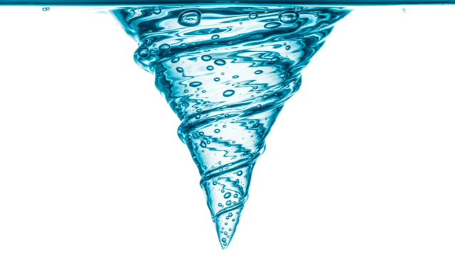 A swirling vortex of clean, clear water. The motion of the water creates a mesmerizing spiral shape, perfect for conceptual themes.  transparent background