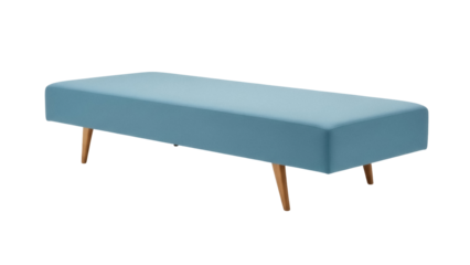 Isolated light-blue bench with wooden legs for an entrance hall or living room décor idea