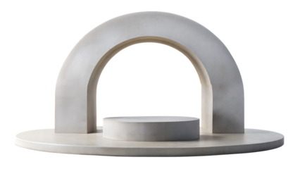 Amber Bottle with Label and Dropper on Concrete Stand next to a White Arch