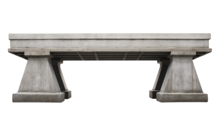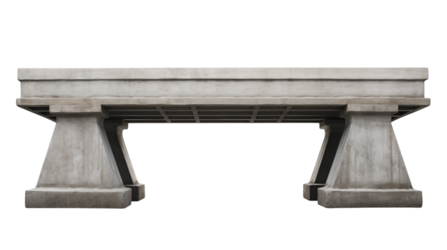 Massive weathered concrete bridge pier and deck section on a transparent background