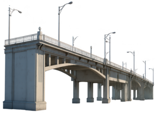 Long concrete bridge structure with classic design and street lights 3d on transparent background