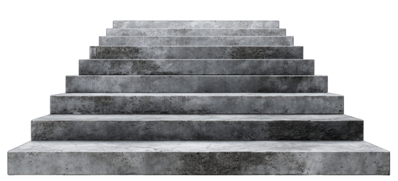 Minimal modern white concrete staircase, isolated on transparent background. Great for architecture, business growth visuals, clean layouts, and contemporary designs.